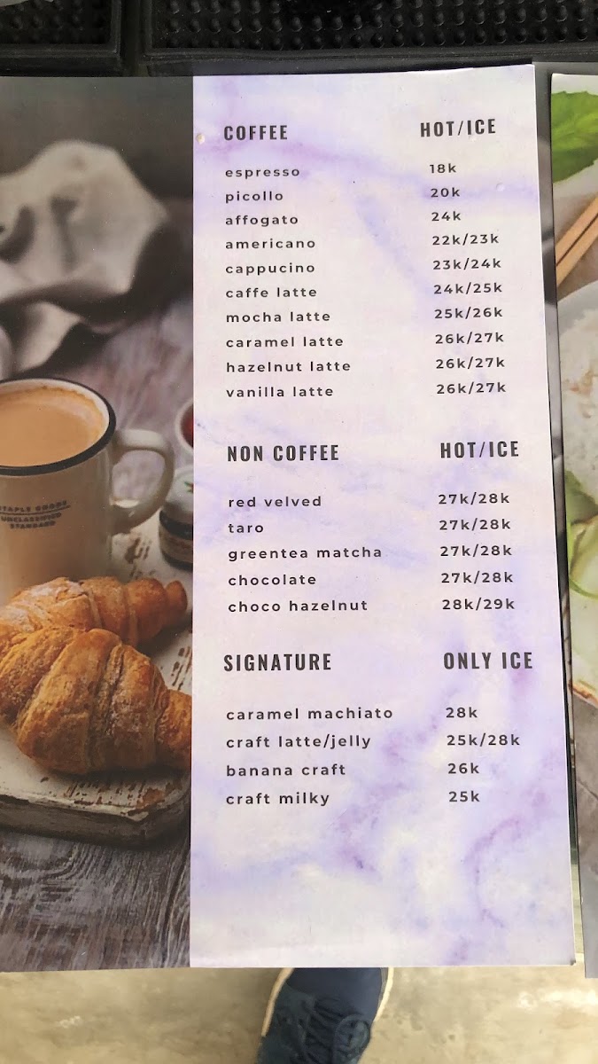 The menu features a variety of enticing beverages and light meals. While the coffee options, like the kopi susu, might not deliver the boldness some hope for, there are still highlights worth exploring. The choco hazelnut offers a creamy indulgence, making it a favorite for those with a sweet tooth. However, be aware that some drinks can lean towards the sweeter side, even when ordered with less sugar.